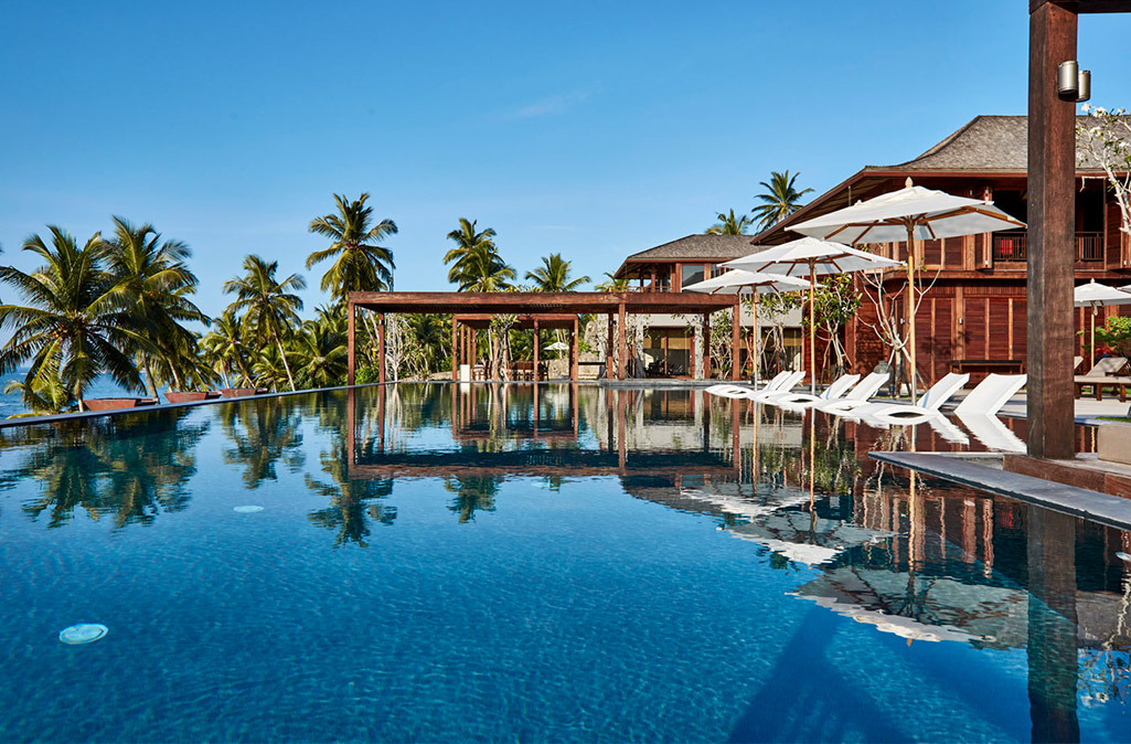 Created by Reda Amalou and AW2 of Paris, the stunning 15-bedroom suites estate combines contemporary tropical architecture with the finest bespoke finishes and furnishings. The facility itself includes a spa, oversized oceanfront pools, dedicated children’s pools with exciting waterslides, and a plethora of spaces for dining and entertainment. An event pavilion and related facilities allow the property to host a wide range of events including weddings and corporate retreats.